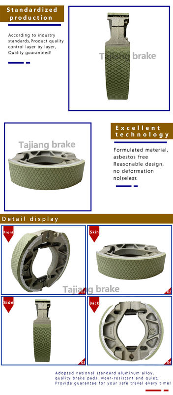 Customize your Motorcycle Brake Shoe product with Tajiang's Product Customization Services. Our Brake Shoes & Linings are of A Class quality, ensuring optimal performance for your Brake Drum and Brake Shoe Assembly. Made in China, our products meet CE certification standards.